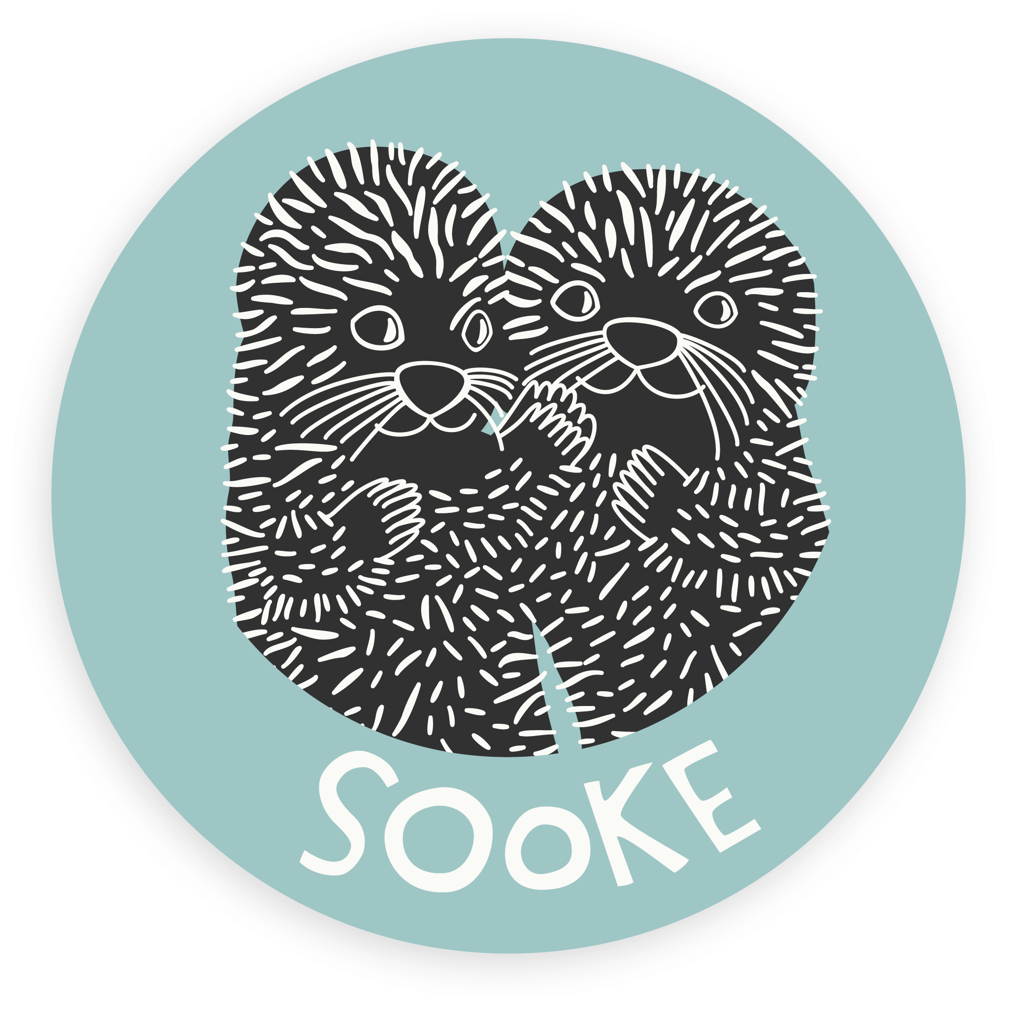 This adorable Sooke, BC sticker features two charming sea otters holding hands, perfect for adding a splash of nature to your belongings.