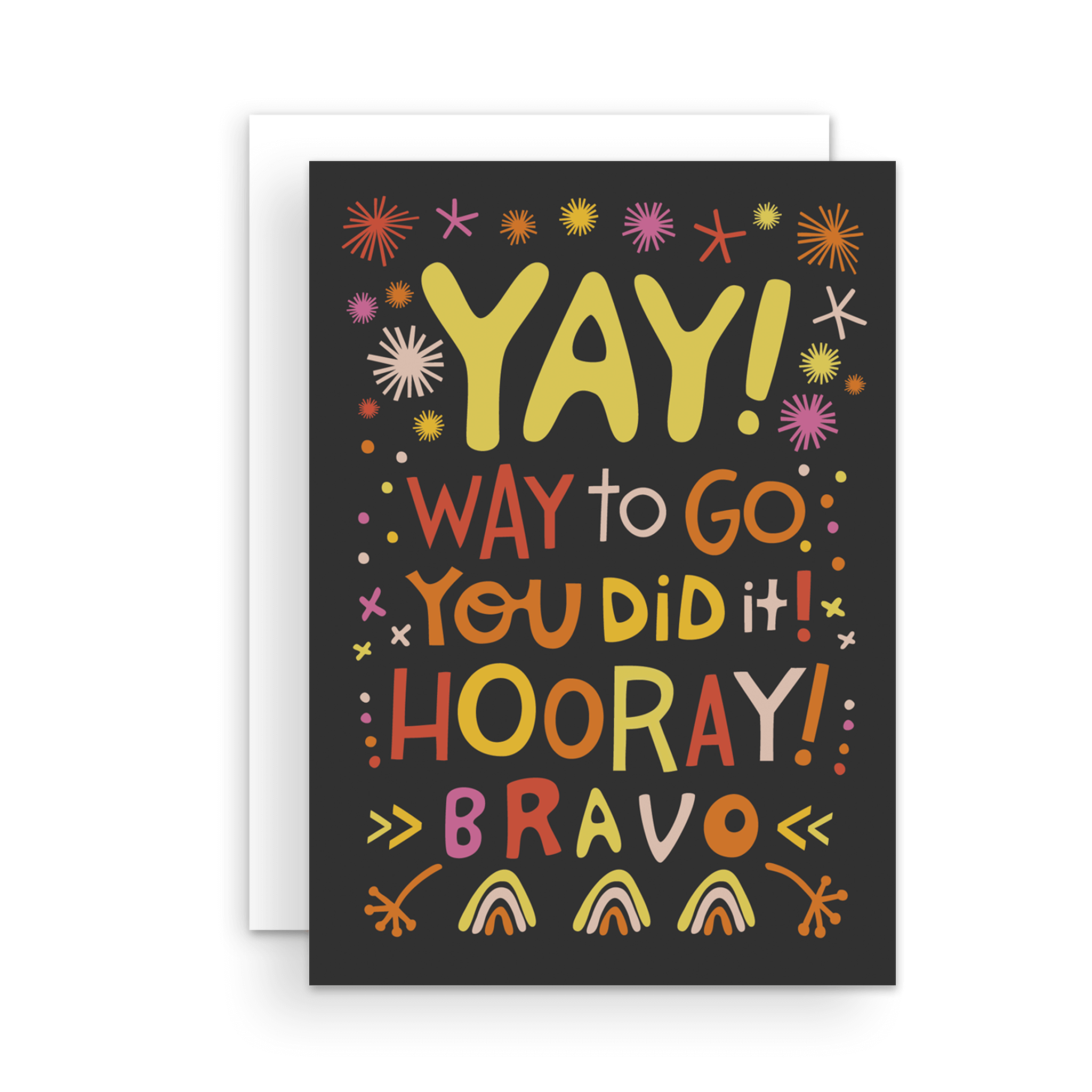 When you want to say “Yay! Way to go! You did it! Hooray! Bravo!” Featuring a fun and lively design, this congratulations card is ideal for celebrating achievements, big or small.