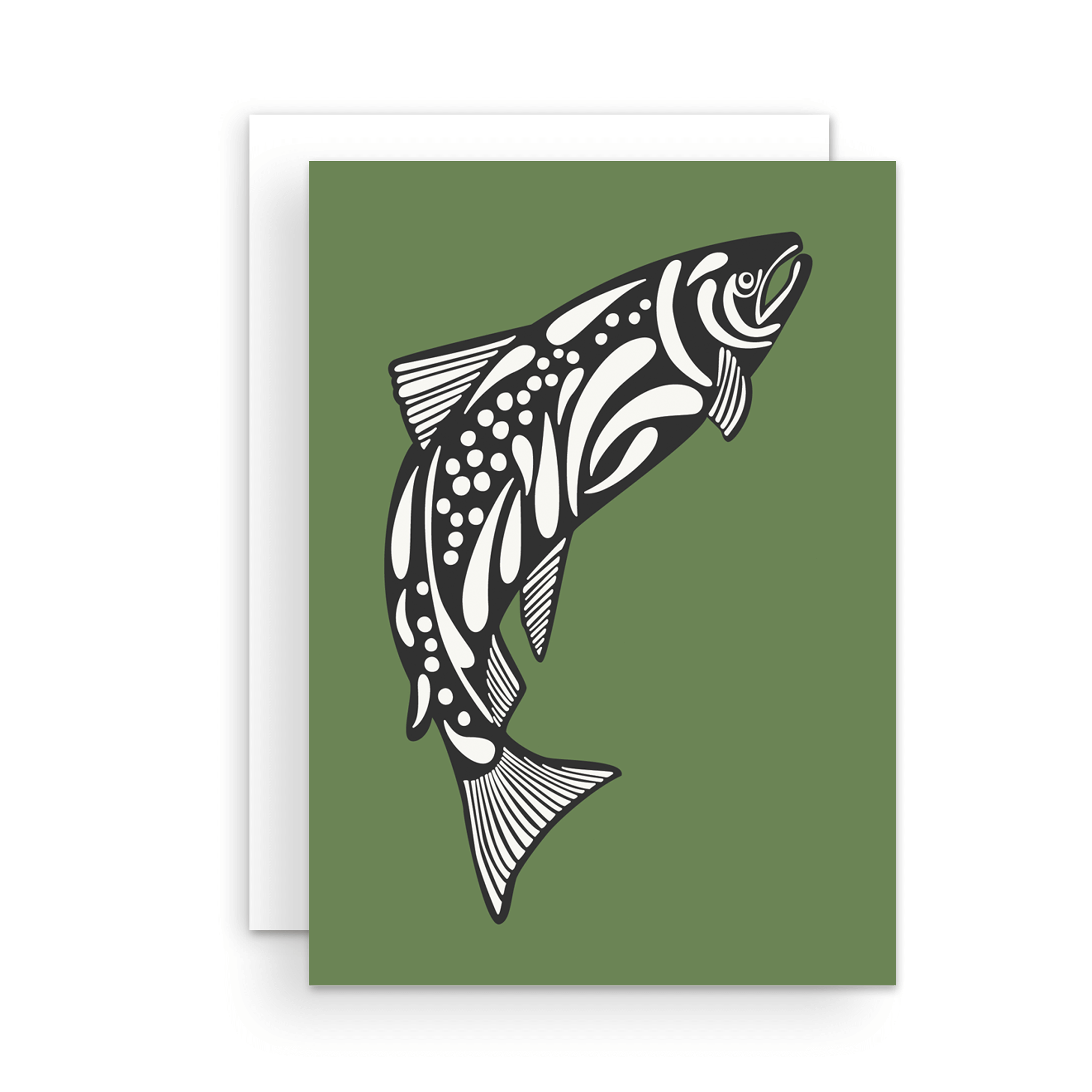 Featuring an illustration that showcases the energy of these magnificent salmon, it’s perfect for connecting with friends and family who share a passion for fishing.