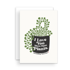 For the houseplant fans. A card that says "I Love You More Than Plants. Just kidding. You're tied." on a potted houseplant, with a white background.