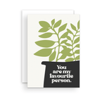 A card with the words "You are my favourite person." on a drawing of a houseplant on a white background.