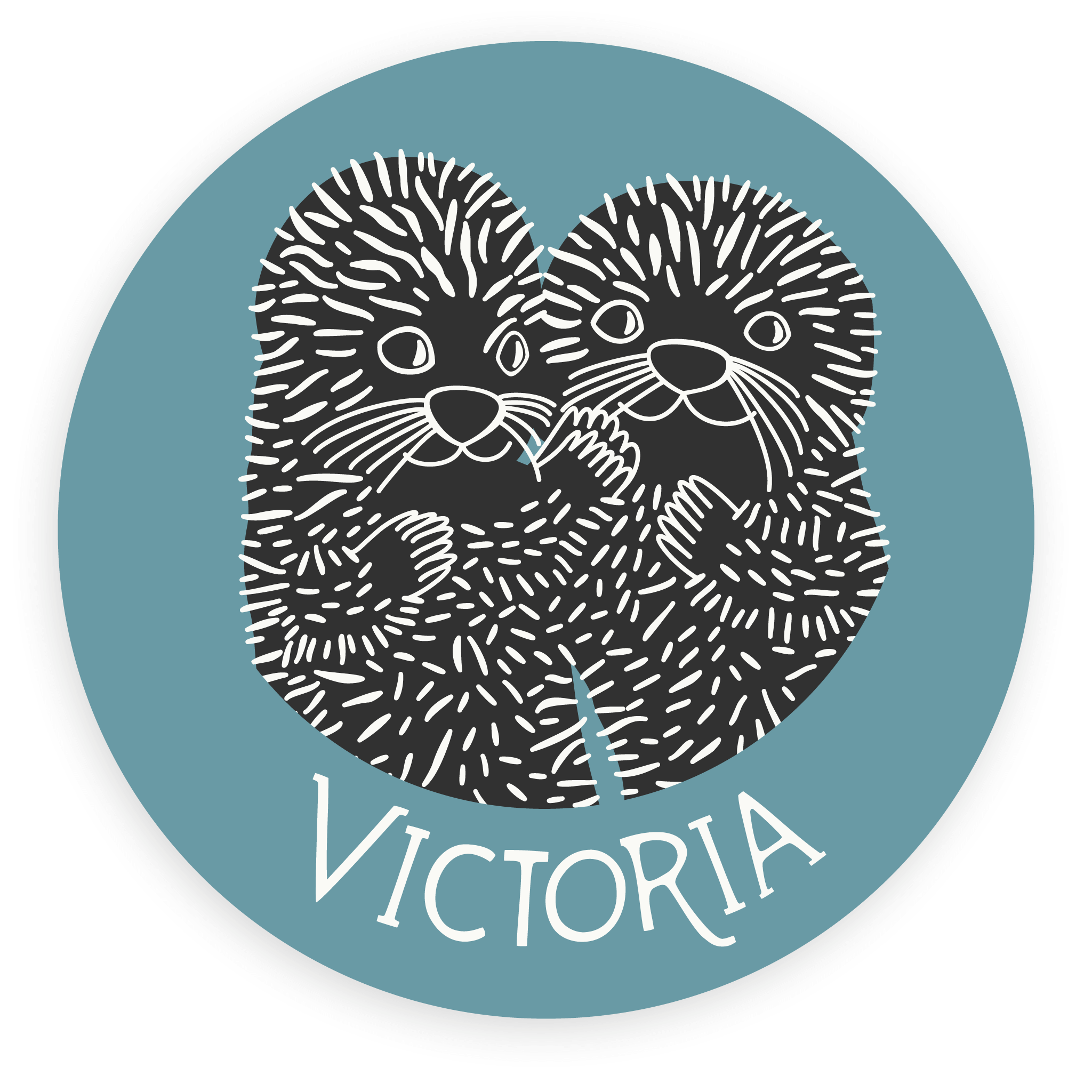 This adorable Victoria, BC sticker features two charming sea otters holding hands, perfect for adding a splash of nature to your belongings.