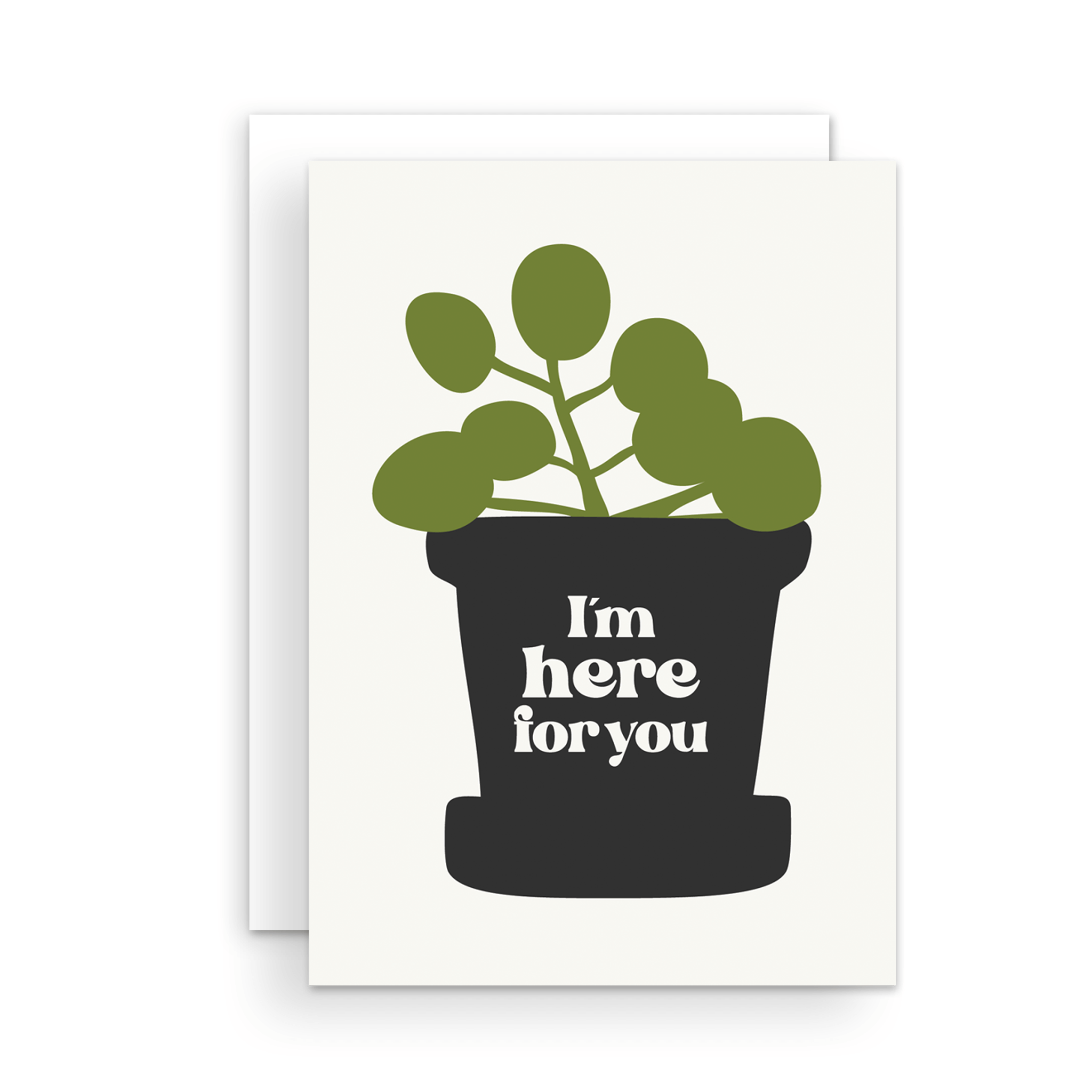 A simple gesture to show you care and are present. This greeting card shows a simple drawing of a potted houseplant and the phrase "I'm here for you".