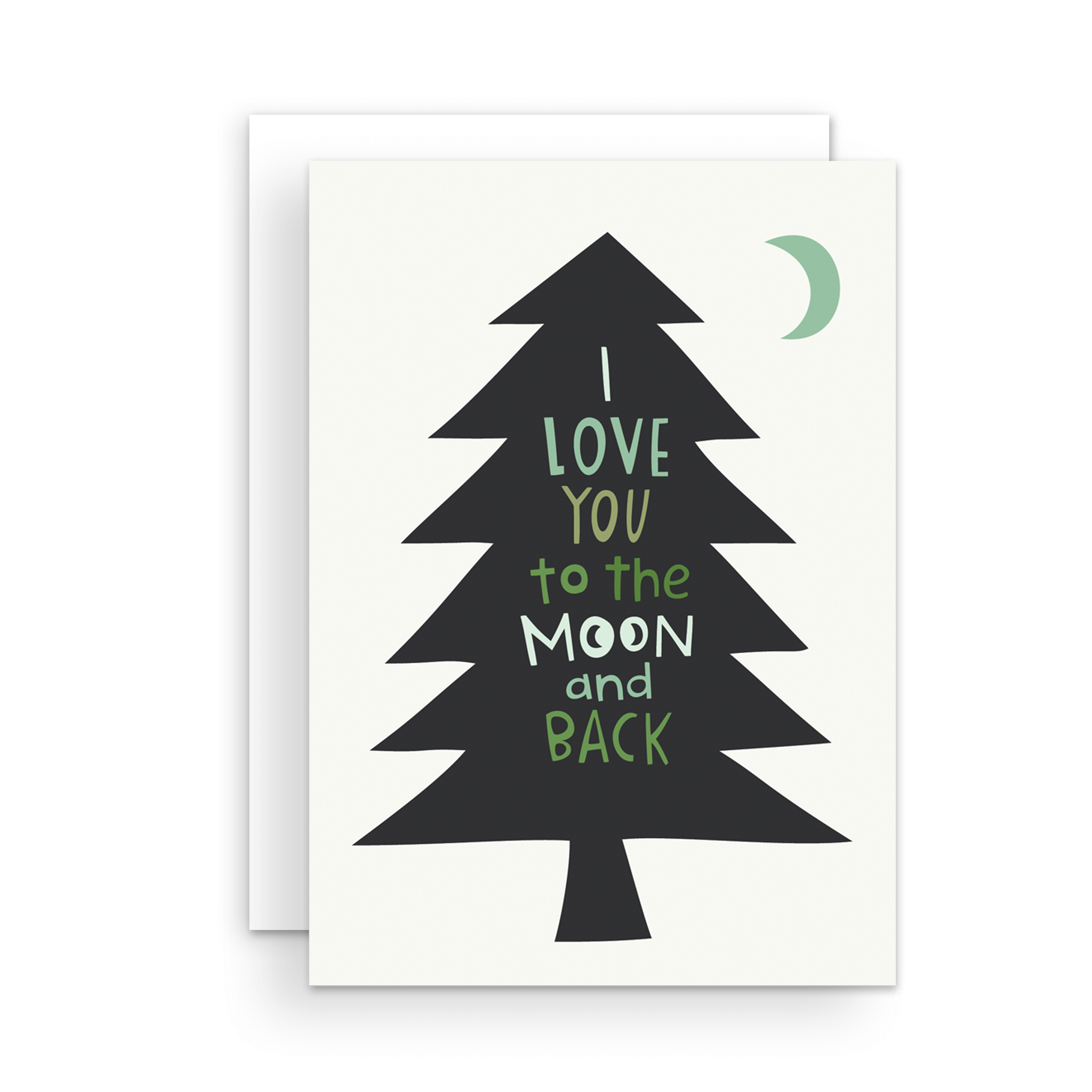 Remind someone special how much they mean to you, with this simple illustration of this timeless phrase: “I Love You to the Moon and Back”.