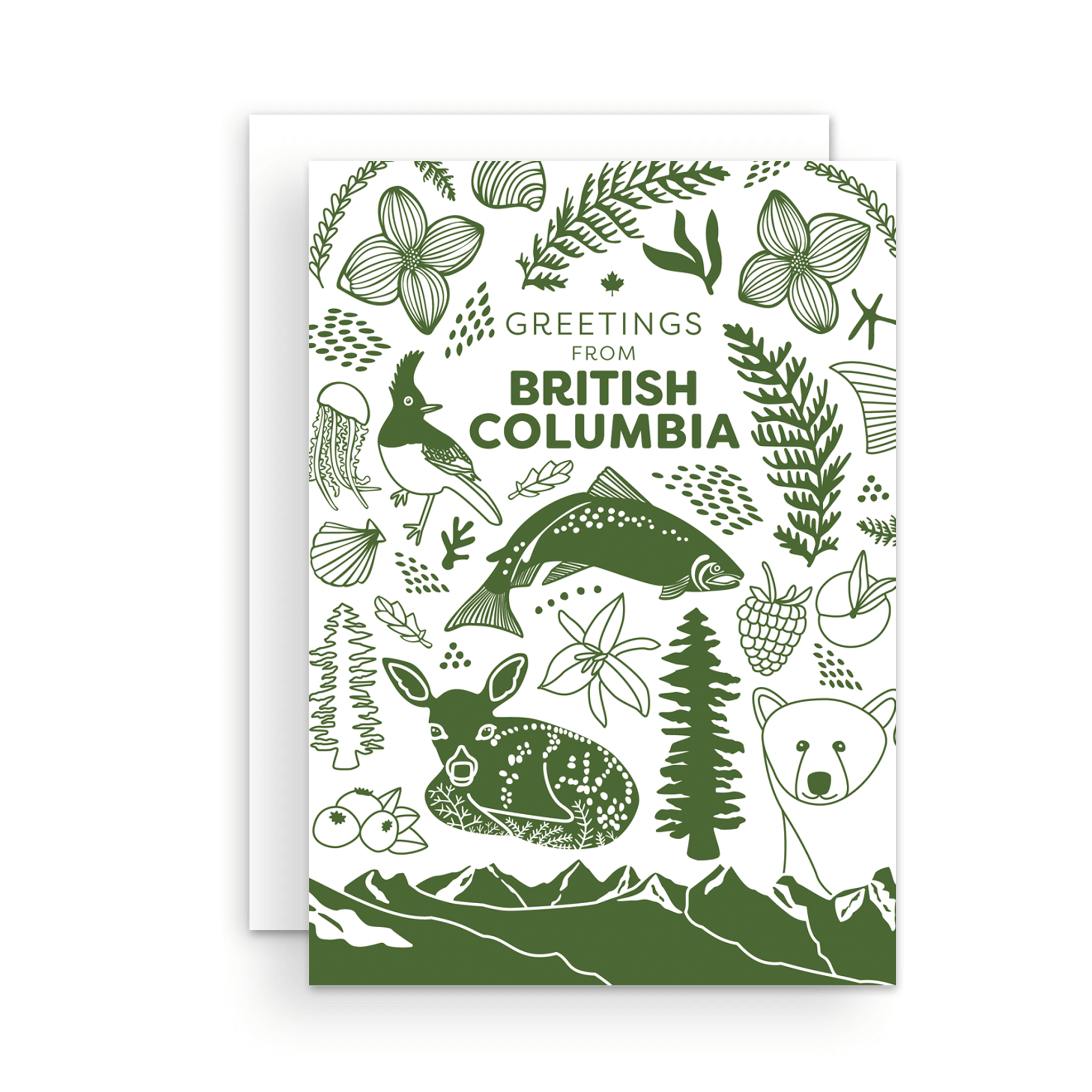 Celebrate the spirit of British Columbia with this forest and coastal-themed greeting card.