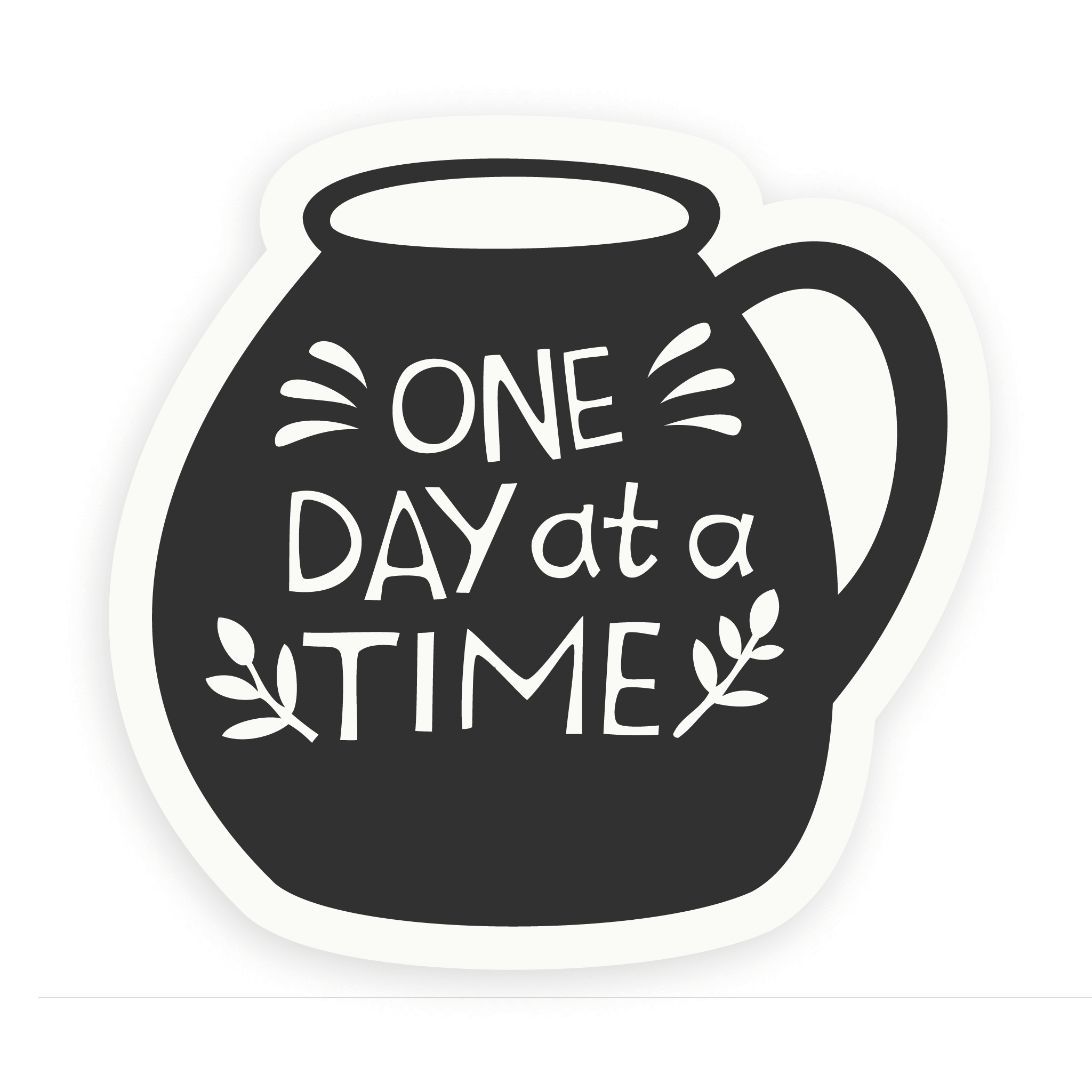 Celebrate your self-care journey with this encouraging black and white mug sticker, which says "One Day at a Time".