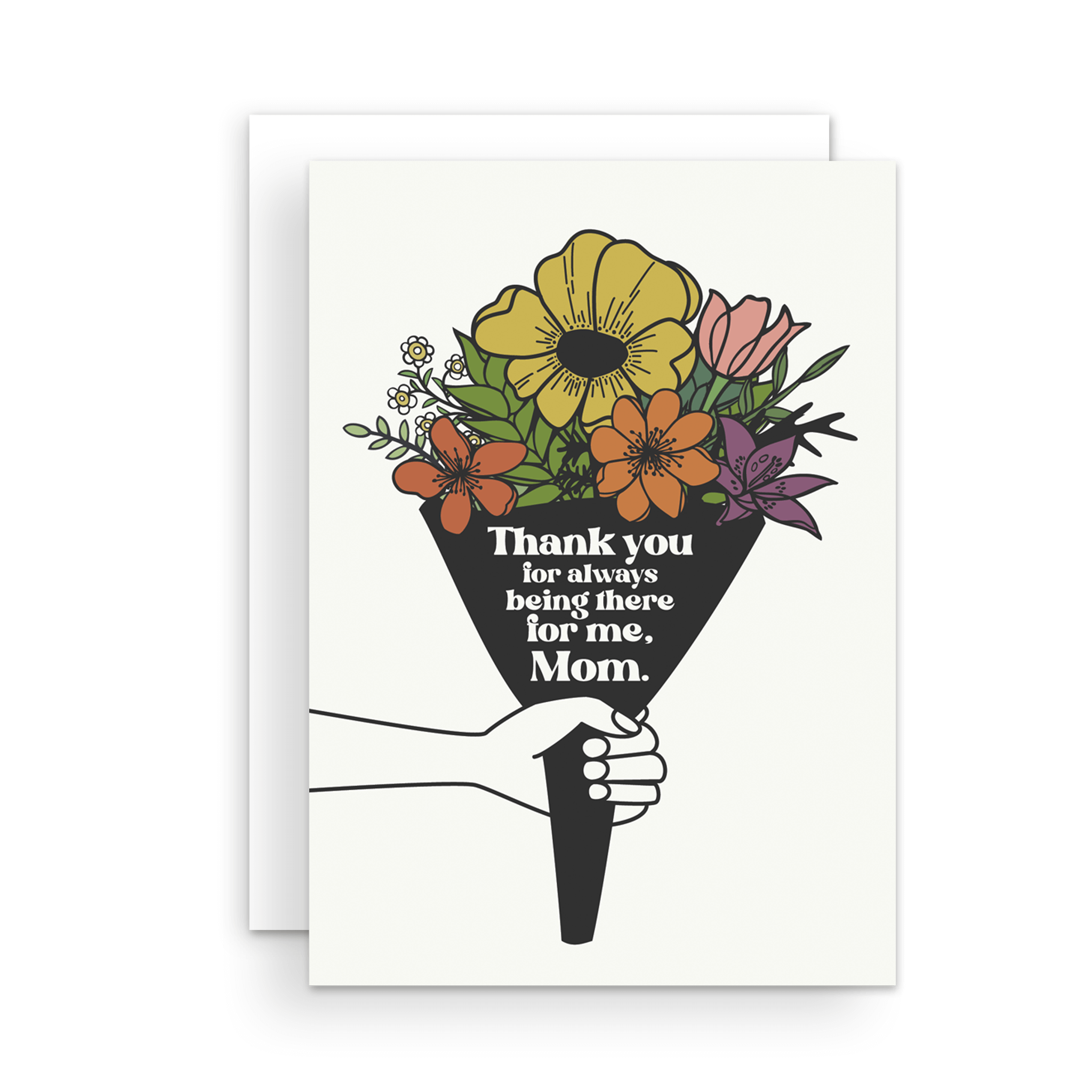 A drawing of a colourful bouquet and the words "Thank you for always being there for me Mom".