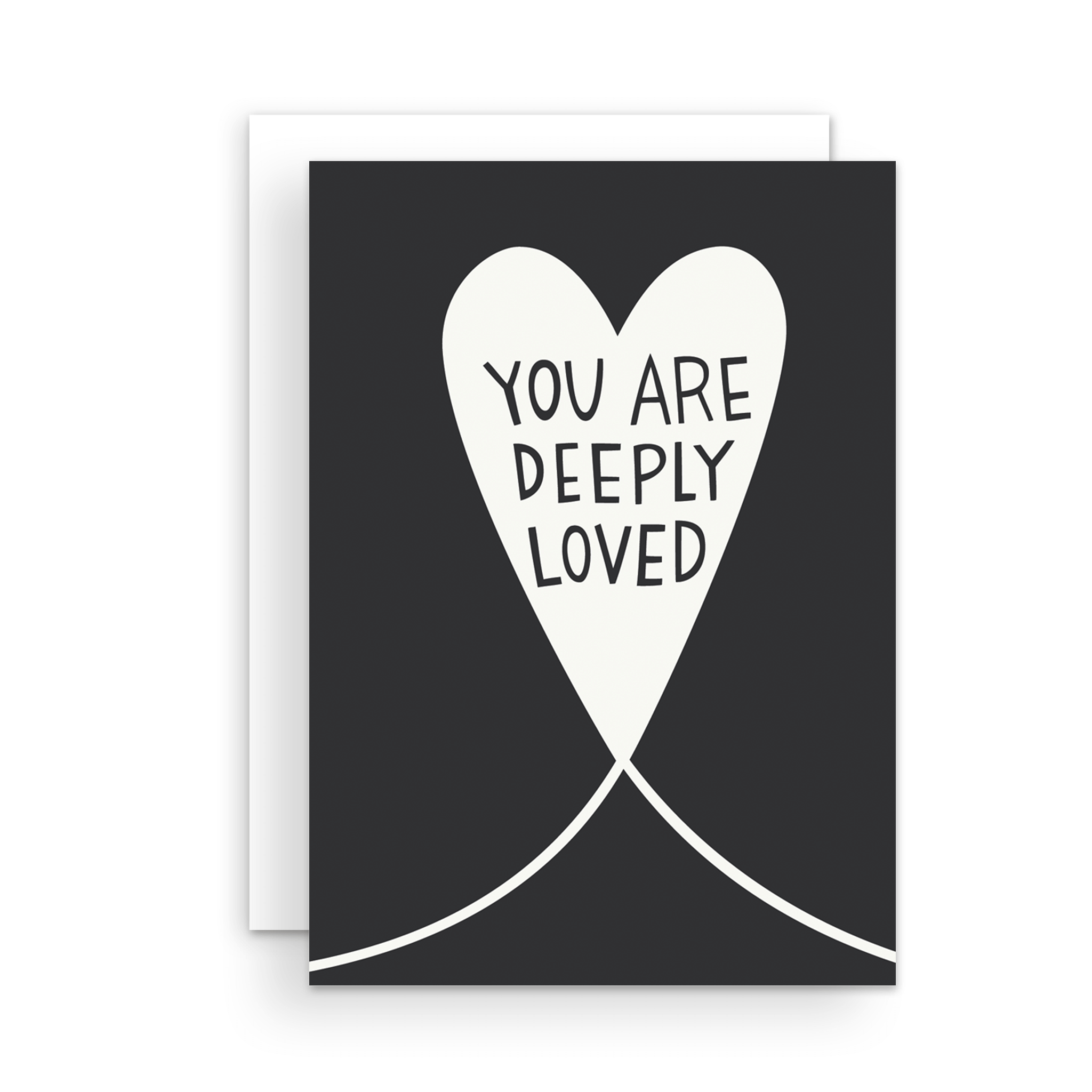 When you want to remind someone special just how cherished they are. This simple but meaningful, black and white design pairs a heart with the words “You are deeply loved”.