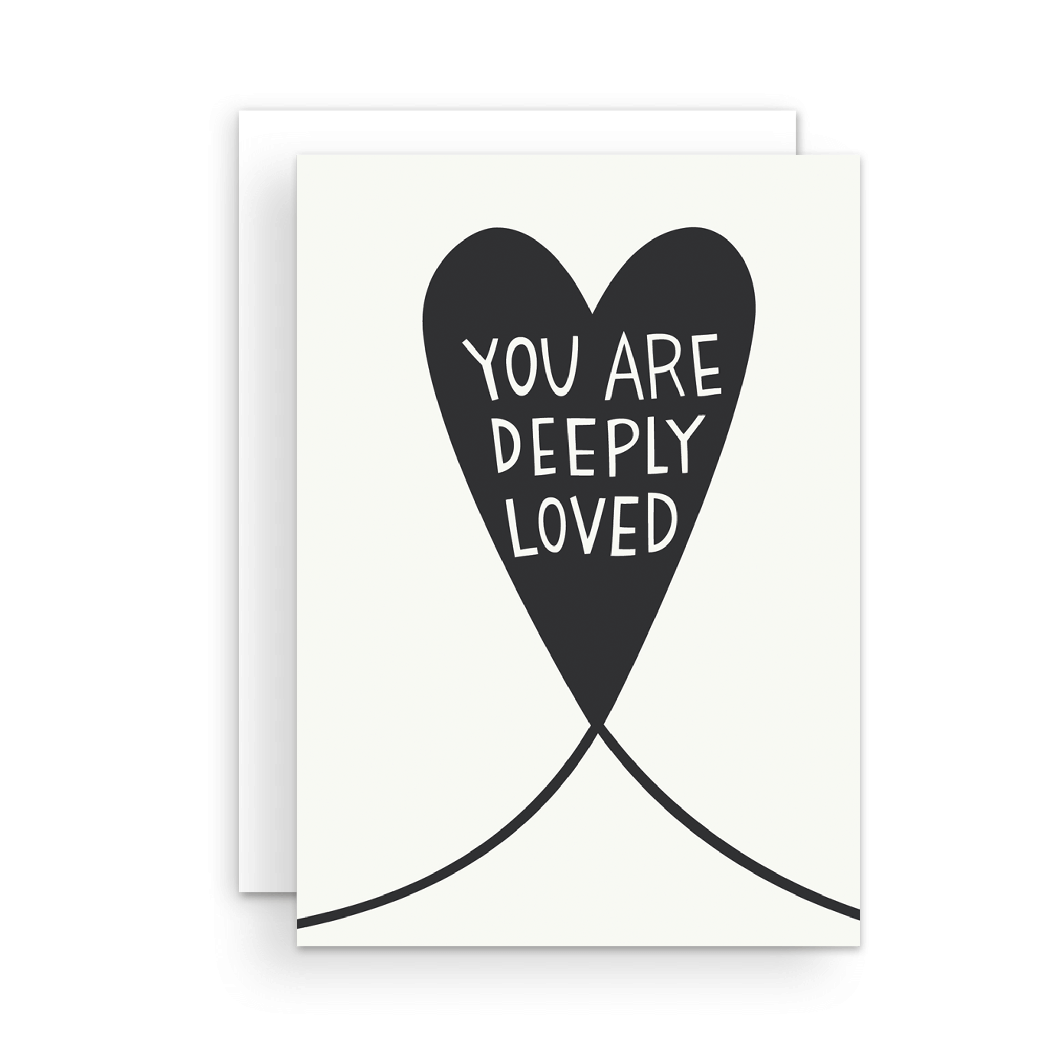 When you want to remind someone special just how cherished they are. This simple but meaningful, black and white design pairs a heart with the words “You are deeply loved”.